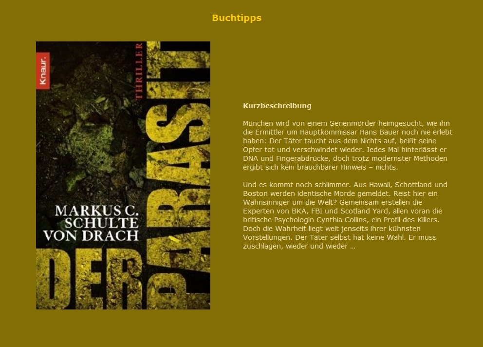 Alle Bücher sind bei amazon.de käuflich zu erwerben. Die Texte wurden zum Teil von amazon.de übernommen.