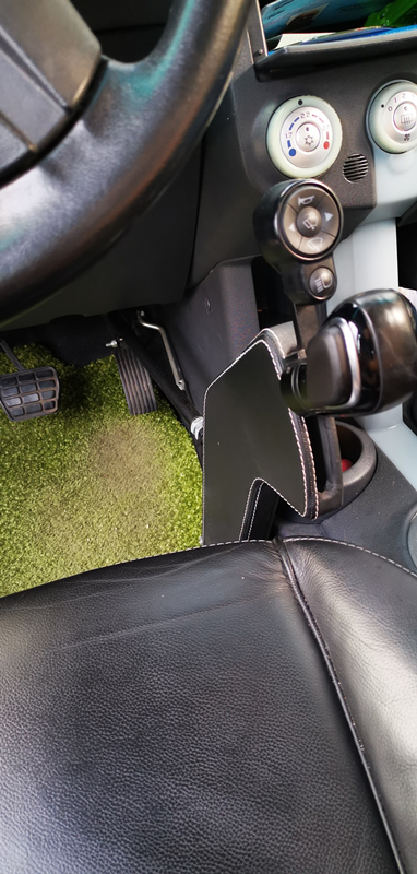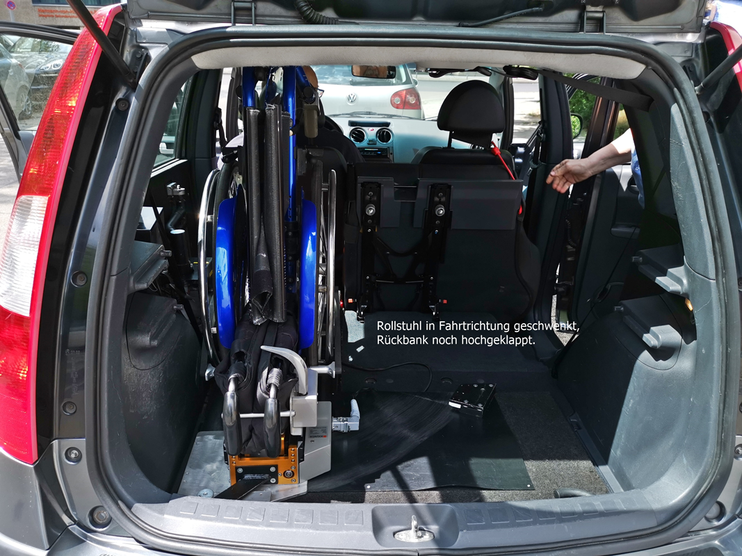 ein klappbares Podest von 12 cm Höhe gebaut, auf dass ich mit Unterstützung durch meine Frau fahre, um mich dann mit einem Rutschbrett auf den Fahrersitz zu ziehen. Auf diesem Sitz ist dann die Welt für mich als Autofahrer